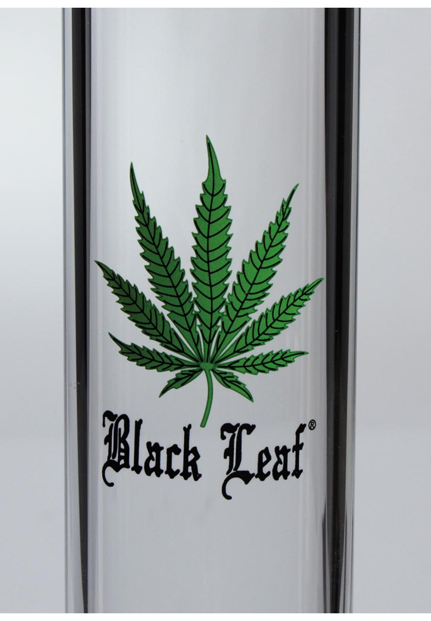 Meget elegant bong lavet af borosilikatglas med hampbladmotiv, Sliphul, rund bund og lige cylinder. Inkl glashoved!