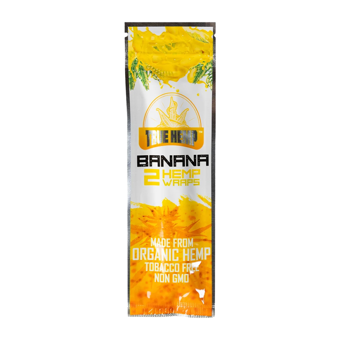 True Hemp's blunts ligner en blunt, dog er forskellen, at en normal blunt er lavet af tobak og denne er 100% tobaksfri. True Hemp Blunt Wraps Banana er lavet af 100% hamp og har en lækker sød banan smag og lugt.