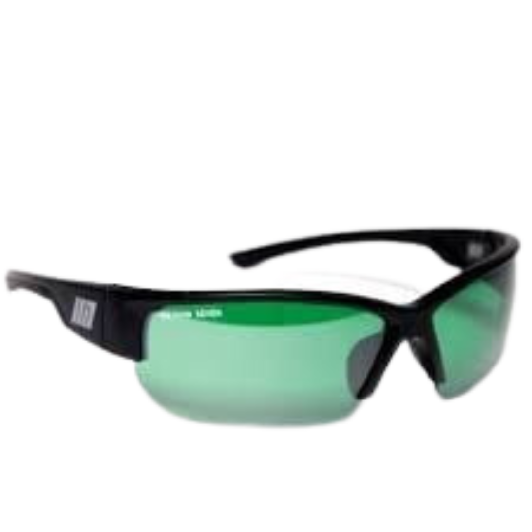 Objektiver er polycarbonat med 100% UV-beskyttelse og Flash Silver-linsebelægning. Ligesom andre premiumbriller og i modsætning til typiske LED briller, er disse linser decenteret (asymmetrisk) for at eliminere forvrængning, der ellers ville forekomme med en buet linse. Kultivatorrammen har en gummipåse, som holder rammerne behageligt i timer, selv under varme forhold. Microfiber taske inkluderet til korrekt rengøring og opbevaring.